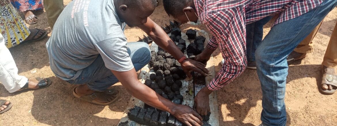 Training on grass charcoal production preserves trees, improves climate, and provides sustainable cooking fuel for families.